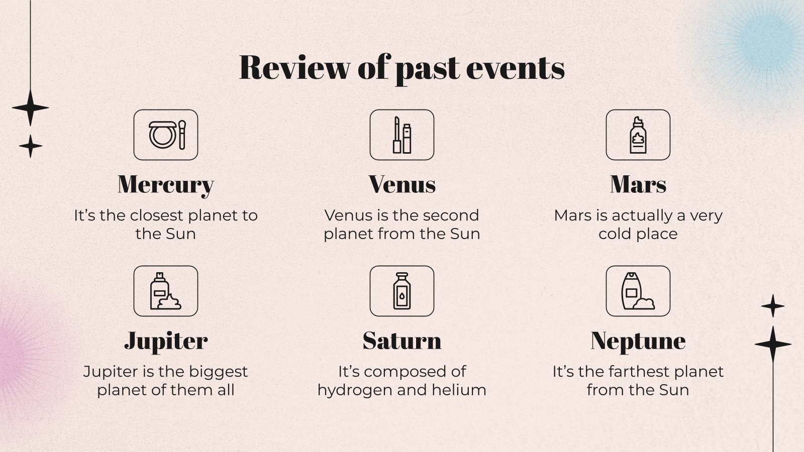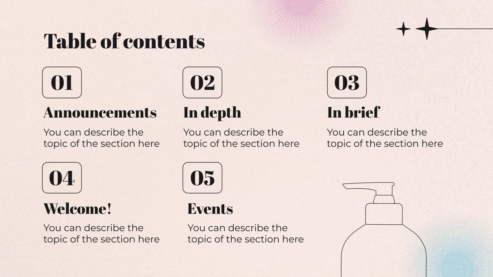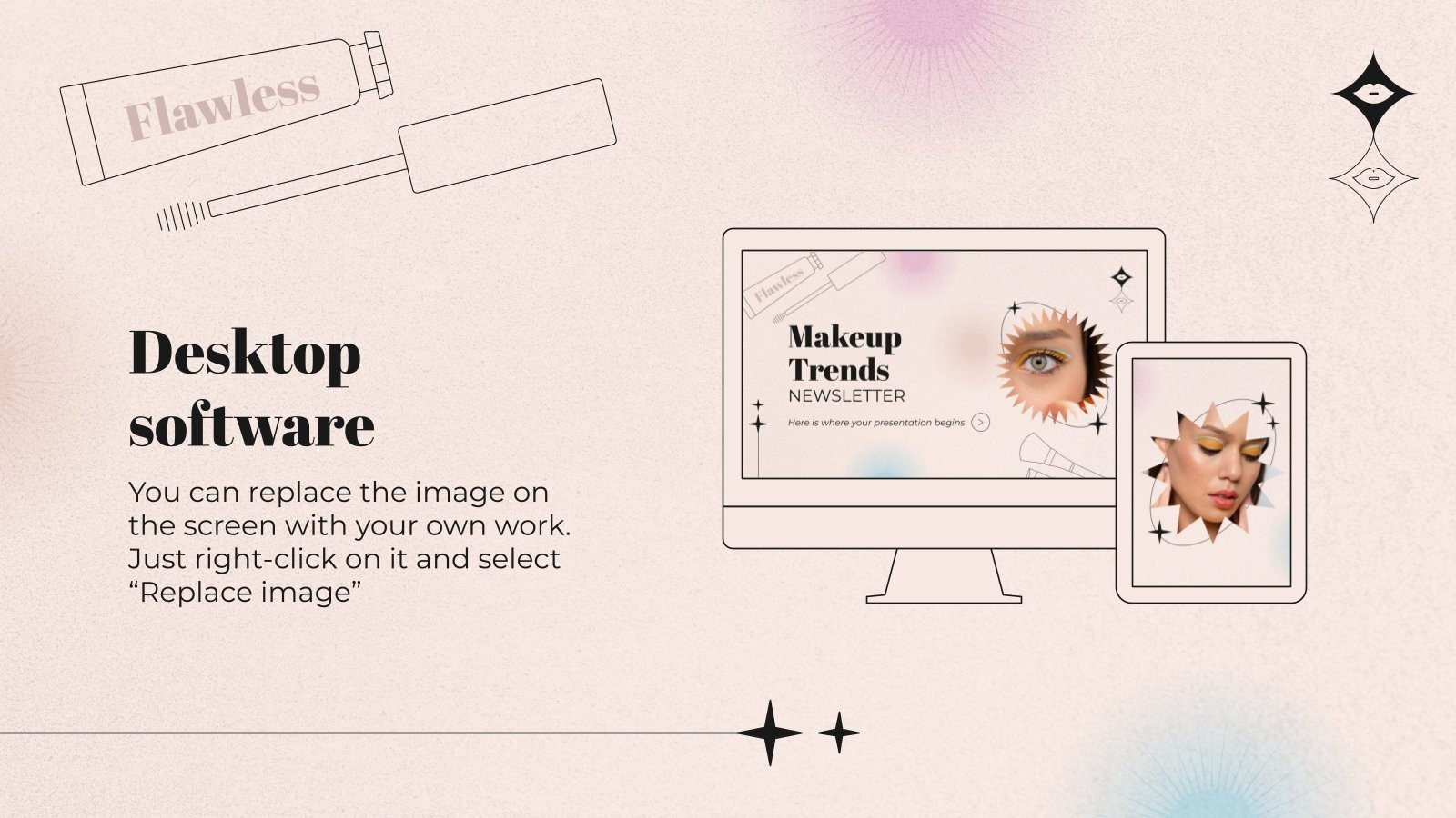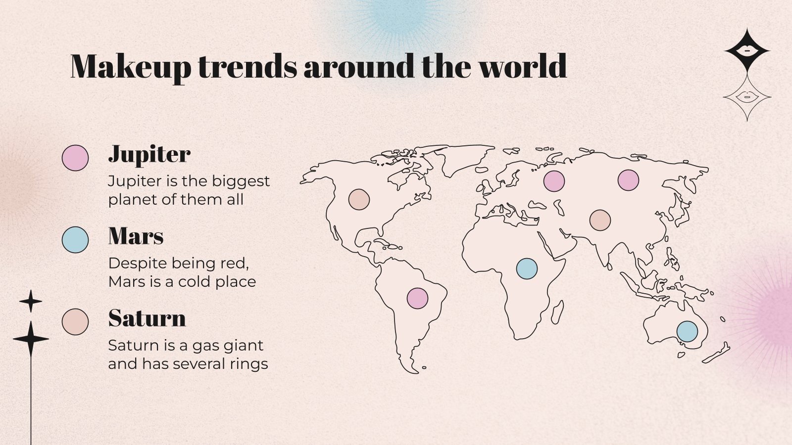 “下载 PowerPoint 或 Google 幻灯片的化妆趋势时事通讯演示文稿。所有营销人员请注意!您是否正在寻找一种方法,让您的时事通讯更具创意,对目标受众更具吸引力?这个惊人的模板非常适合创建完美的时事通讯,从一开始就吸引受众的注意力。凭借其完美的设计和可定制的功能,制作一份脱颖而出并有效传递信息的时事通讯从未如此简单。