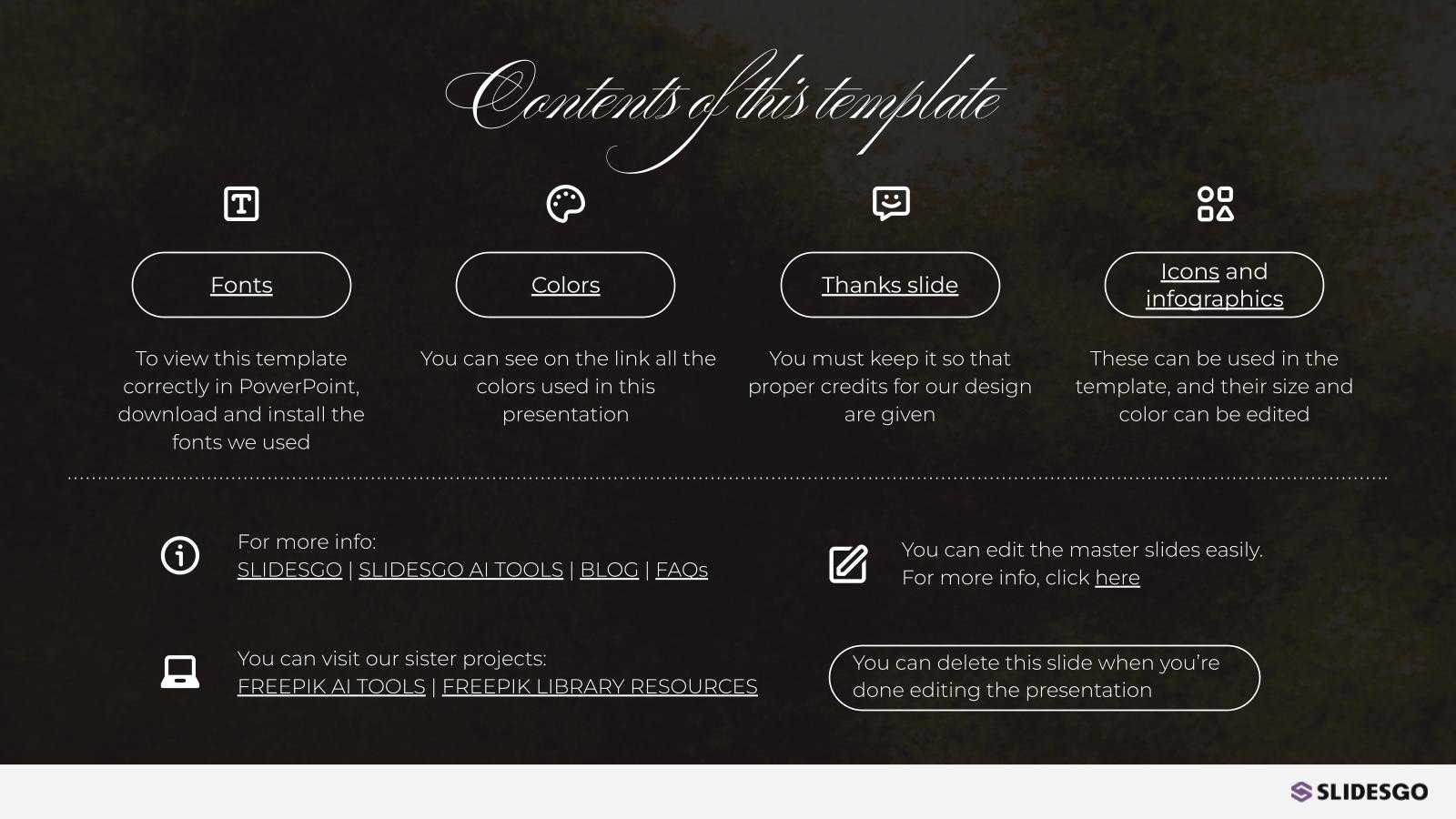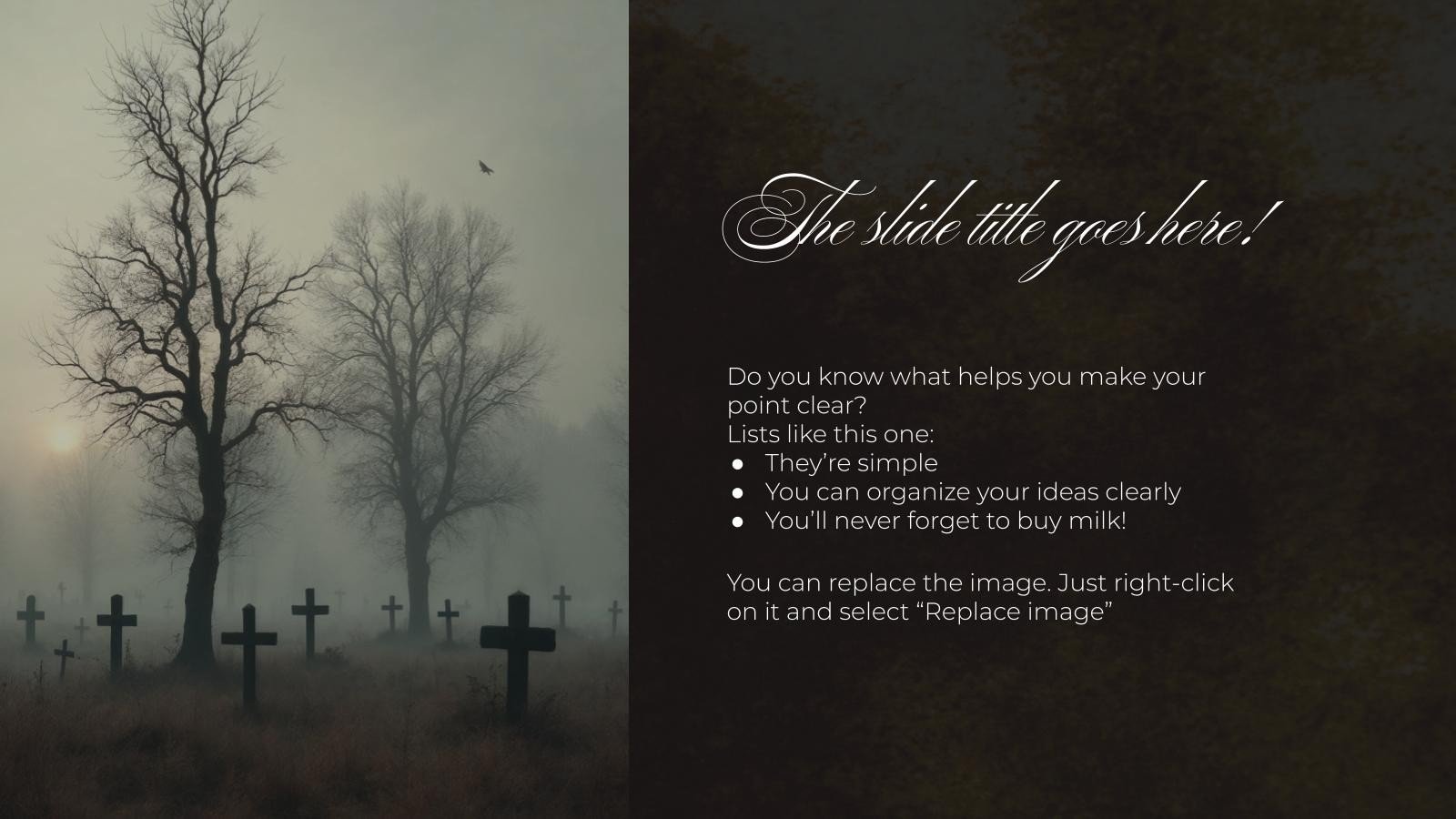 “下载 PowerPoint 或 Google 幻灯片的万圣节演示文稿,开始用创意和原创设计给观众留下深刻印象。像这里这样的 Slidesgo 模板提供了通过使用不同的图形资源以清晰、简洁和直观的方式传达概念、想法或主题的可能性。你需要谈论一个特定的话题,但你不知道该怎么做?尝试使用像这样的演示文稿,100% 可定制!