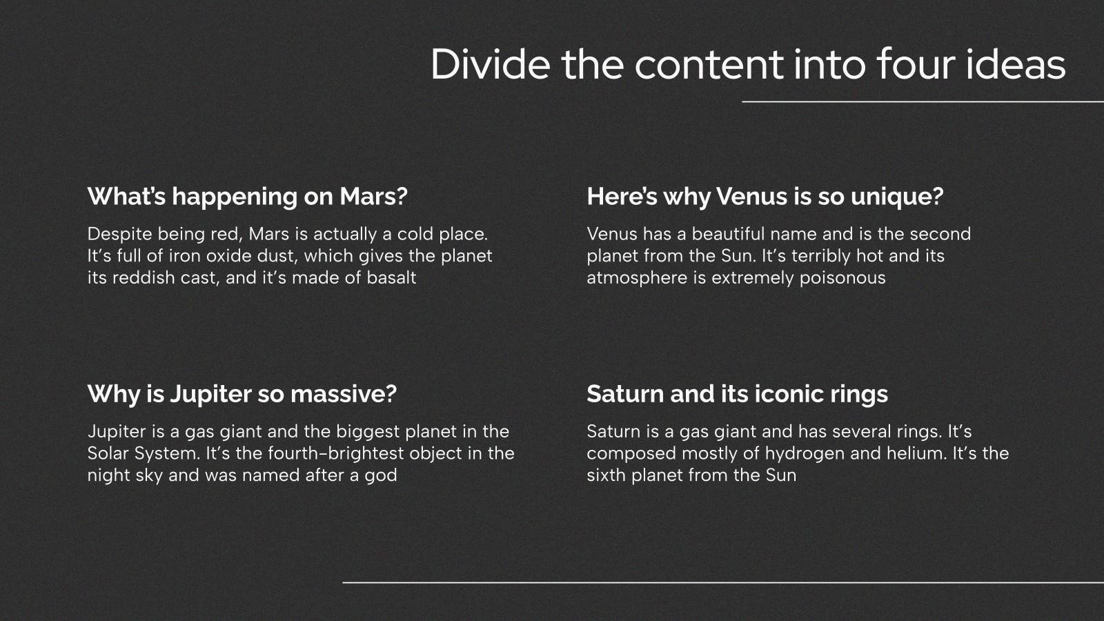 “下载 PowerPoint 或 Google 幻灯片的市场分析报告演示文稿,开始用创意和原创设计给您的观众留下深刻印象。像这里这样的 Slidesgo 模板提供了通过使用不同的图形资源以清晰、简洁和直观的方式传达概念、想法或主题的可能性。你需要谈论一个特定的话题,但你不知道该怎么做?尝试使用像这样的演示文稿,100% 可定制!