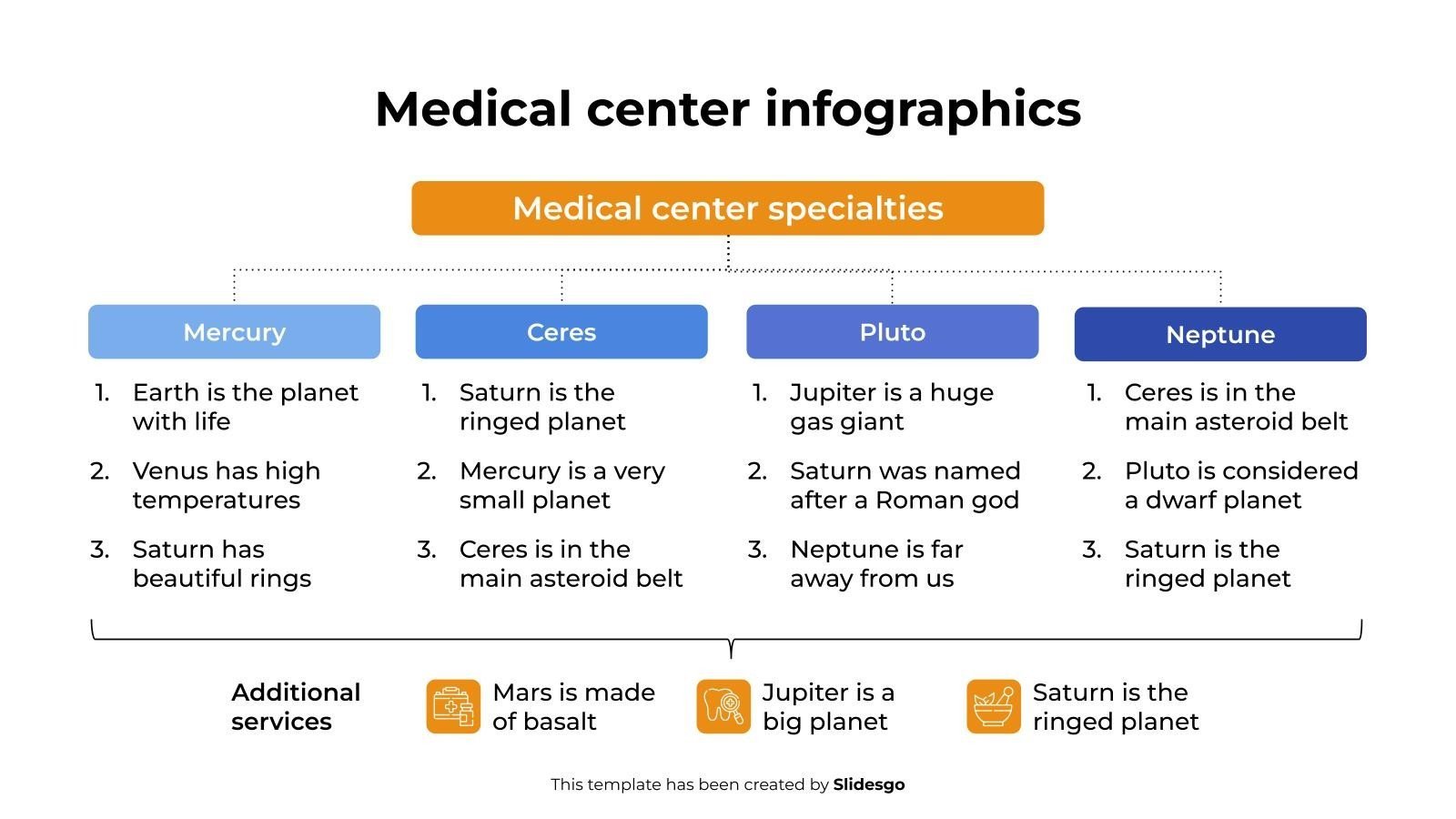 下载适用于 PowerPoint 或 Google 幻灯片的医疗中心信息图表模板,并发现这组用于教育演示的可编辑信息图表。这些资源,从图形到表格,可以与其他演示文稿结合使用或独立使用。最重要的是您将实现的目标:以有序、清晰的方式传递信息。立即下载这组信息图表,用您的方式彻底改变教育世界。