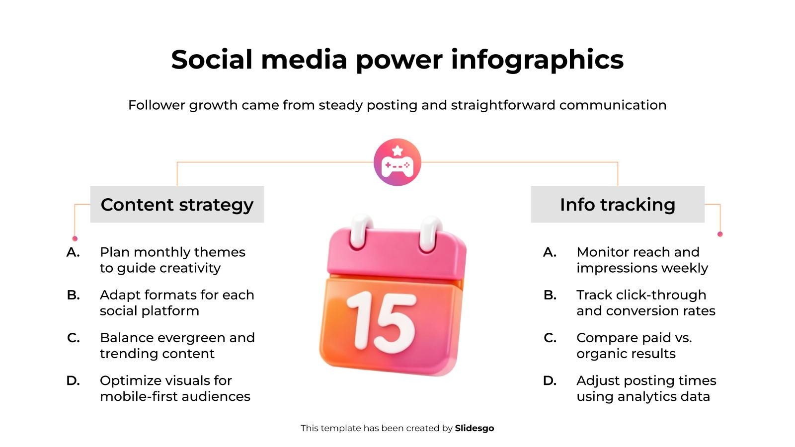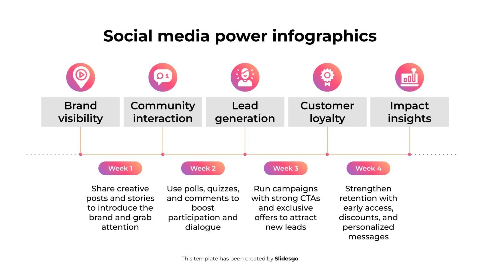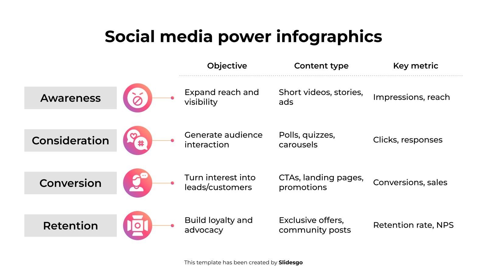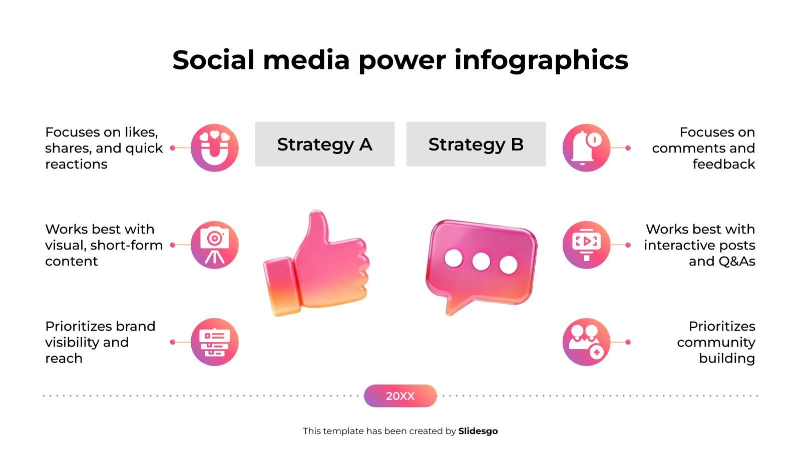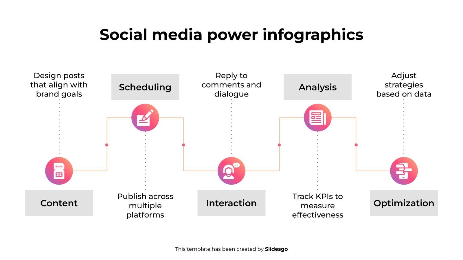 下载适用于 PowerPoint 或 Google 幻灯片的社交媒体力量信息图表模板,以充分利用信息图表。无论您是想在表格中组织您的业务预算,还是想示意性地分析您过去一年的销售额,这套信息图表资源都将有很大帮助。立即开始使用信息图表,将您的业务或营销演示提升到一个新的水平。