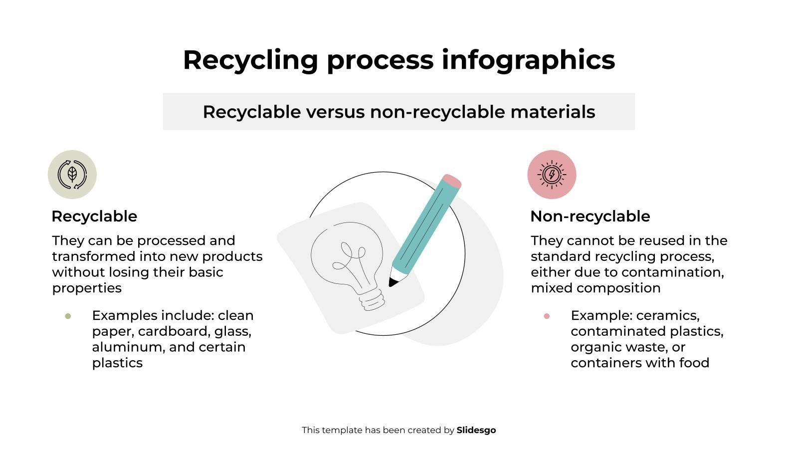 下载适用于 PowerPoint 或 Google 幻灯片的回收过程信息图表模板,以充分利用信息图表。无论您是想在表格中组织您的业务预算,还是想示意性地分析您过去一年的销售额,这套信息图表资源都将有很大帮助。立即开始使用信息图表,将您的业务或营销演示提升到一个新的水平。