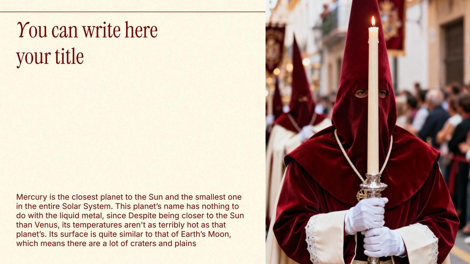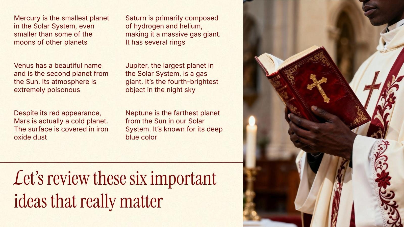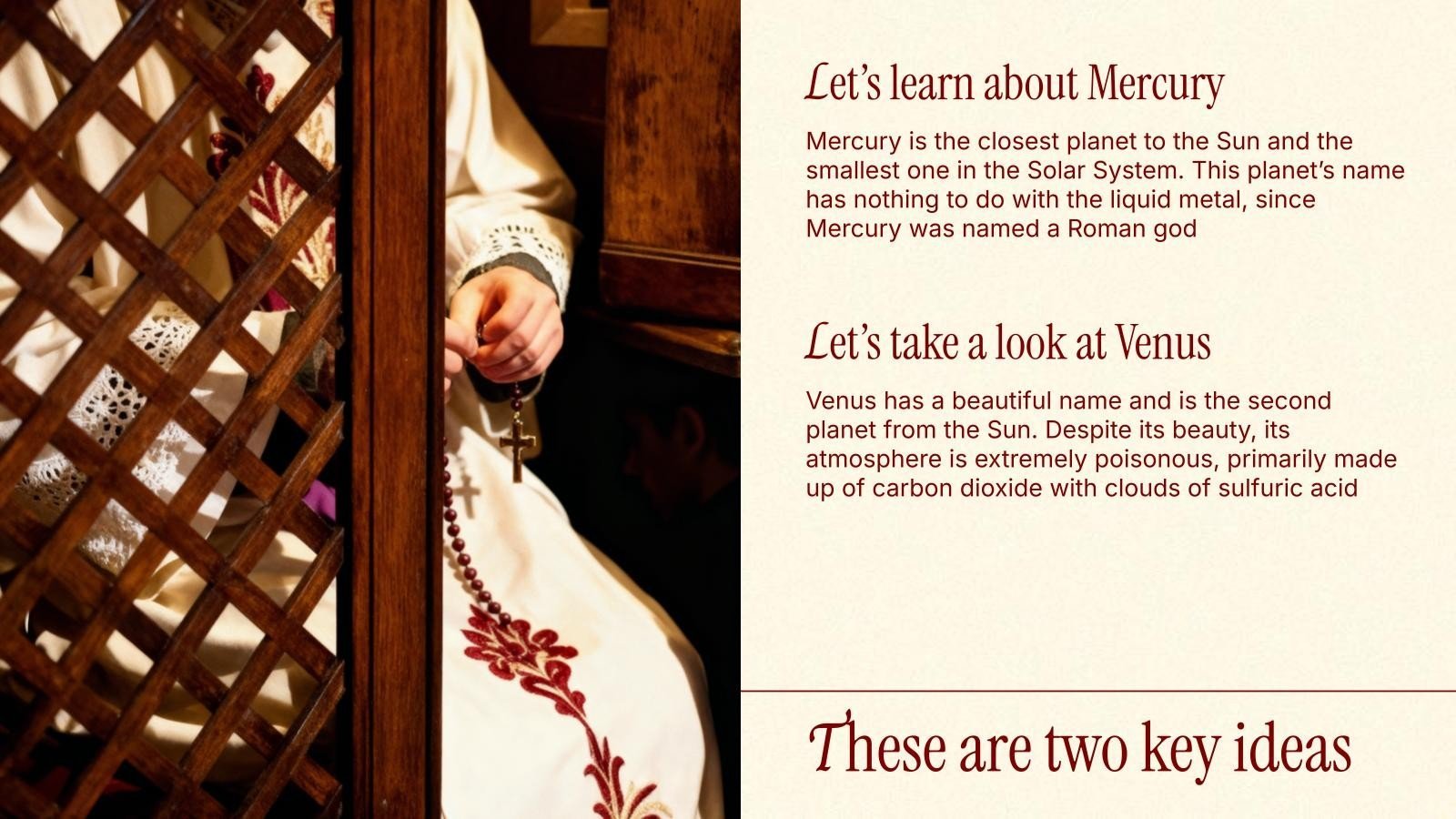 “下载 PowerPoint 或 Google 幻灯片的天主教传统和实践演示文稿,并开始用创意和原创设计给您的观众留下深刻印象。像这里这样的 Slidesgo 模板提供了通过使用不同的图形资源以清晰、简洁和直观的方式传达概念、想法或主题的可能性。你需要谈论一个特定的话题,但你不知道该怎么做?尝试使用像这样的演示文稿,100% 可定制!