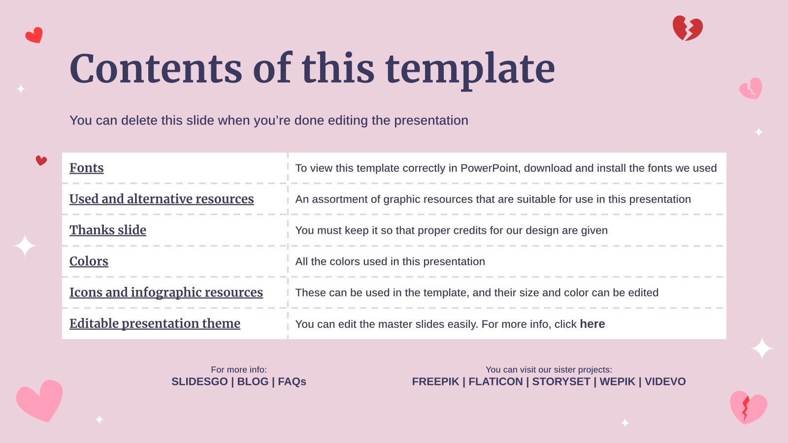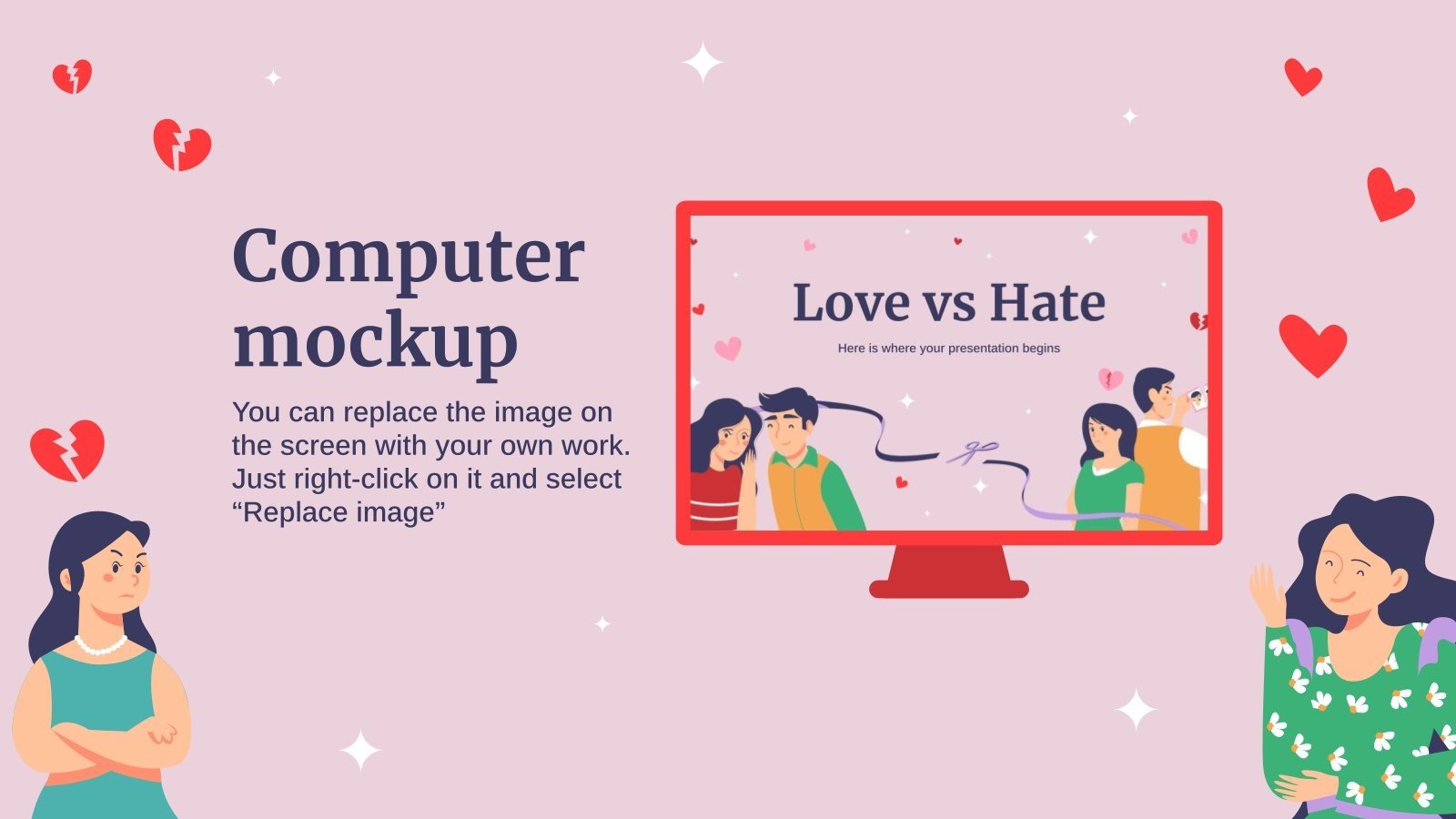 “下载 PowerPoint 或 Google 幻灯片的爱与恨演示文稿,开始用创意和原创设计给观众留下深刻印象。像这里这样的 Slidesgo 模板提供了通过使用不同的图形资源以清晰、简洁和直观的方式传达概念、想法或主题的可能性。你需要谈论一个特定的话题,但你不知道该怎么做?尝试使用像这样的演示文稿,100% 可定制!