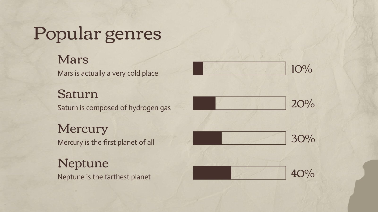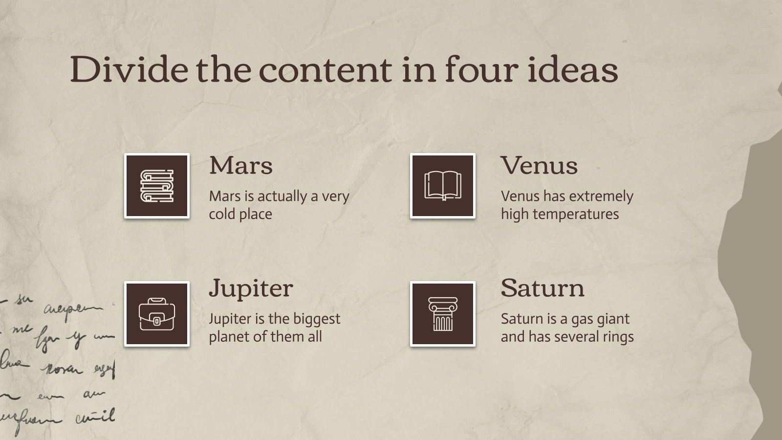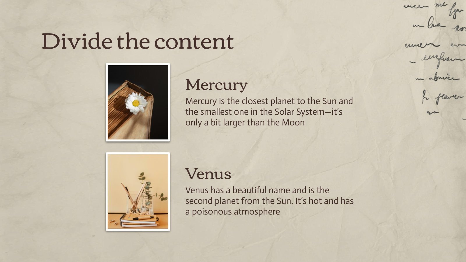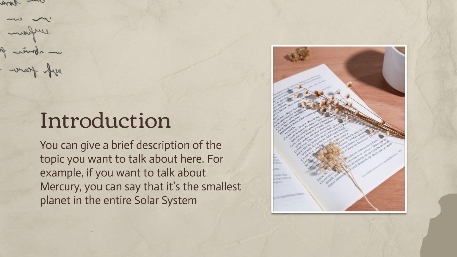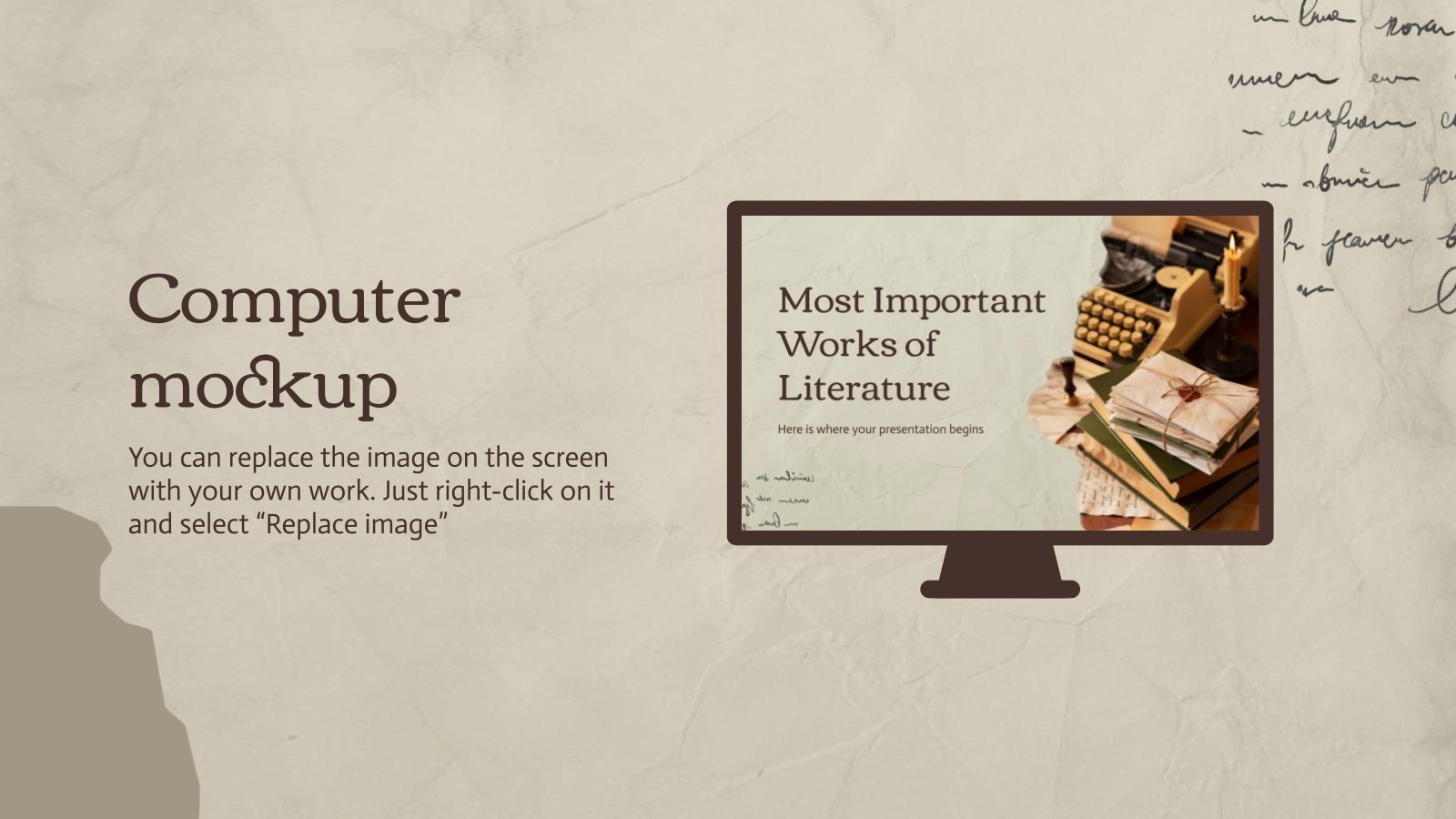“下载 PowerPoint 或 Google 幻灯片的最重要的文学作品演示文稿,并开始用创意和原创设计给观众留下深刻印象。像这里这样的 Slidesgo 模板提供了通过使用不同的图形资源以清晰、简洁和直观的方式传达概念、想法或主题的可能性。你需要谈论一个特定的话题,但你不知道该怎么做?尝试使用像这样的演示文稿,100% 可定制!