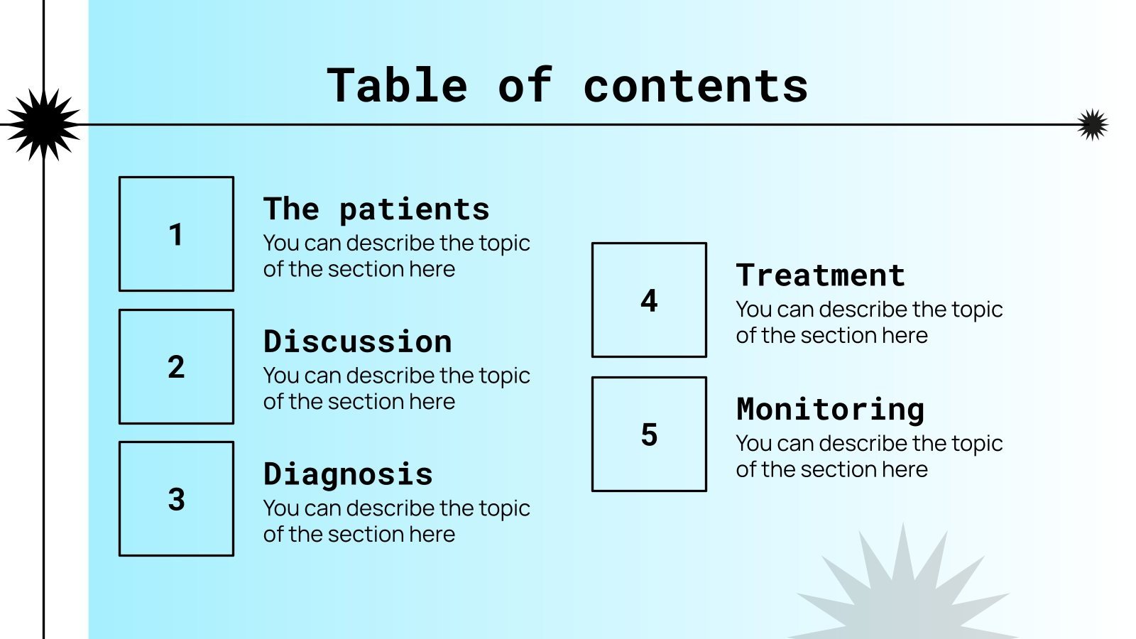 下载 PowerPoint 或 Google 幻灯片的亚瑟综合症临床病例报告演示文稿。临床病例不仅仅是一组症状和诊断。这是一个关于患者、他们的经历和康复之旅的独特故事。每个案例都是医疗保健专业人员运用专业知识和同理心来帮助有需要的人的机会。使用这个可编辑的 Google 幻灯片或 PowerPoint 模板,您可以详细描述临床病例,这对于医学生和其他医生来说可能是无价的。