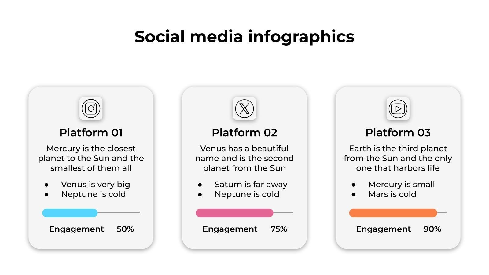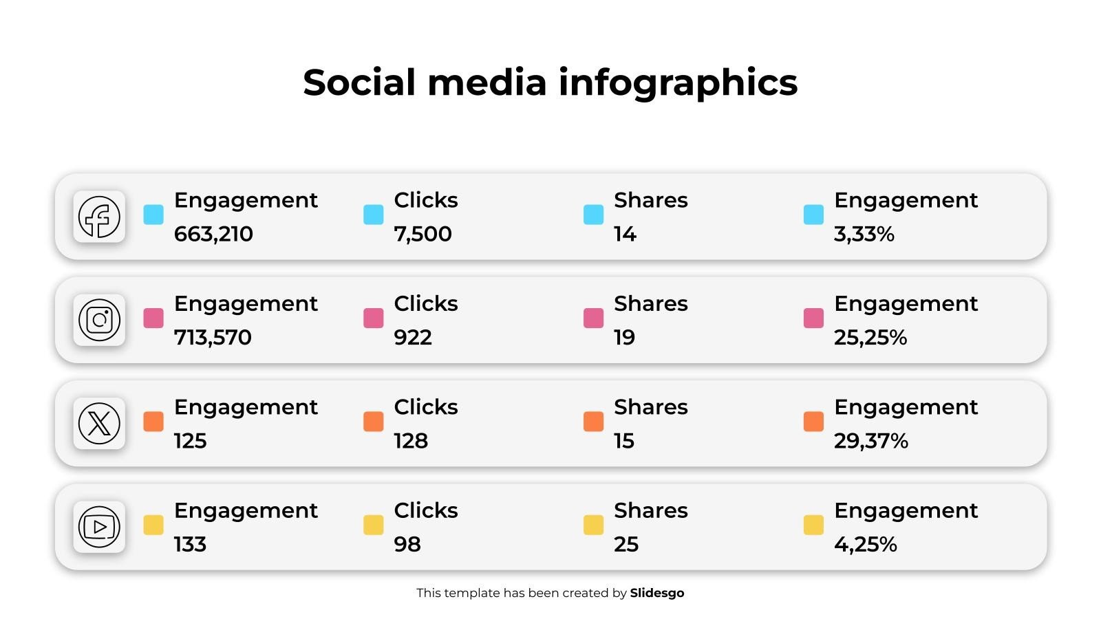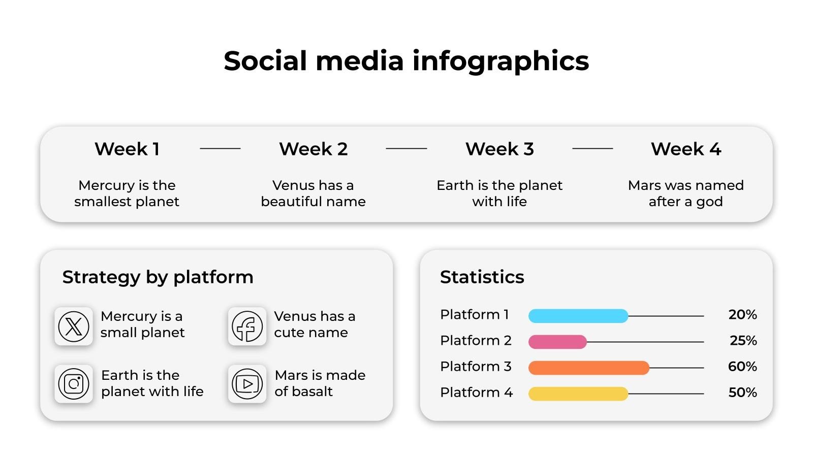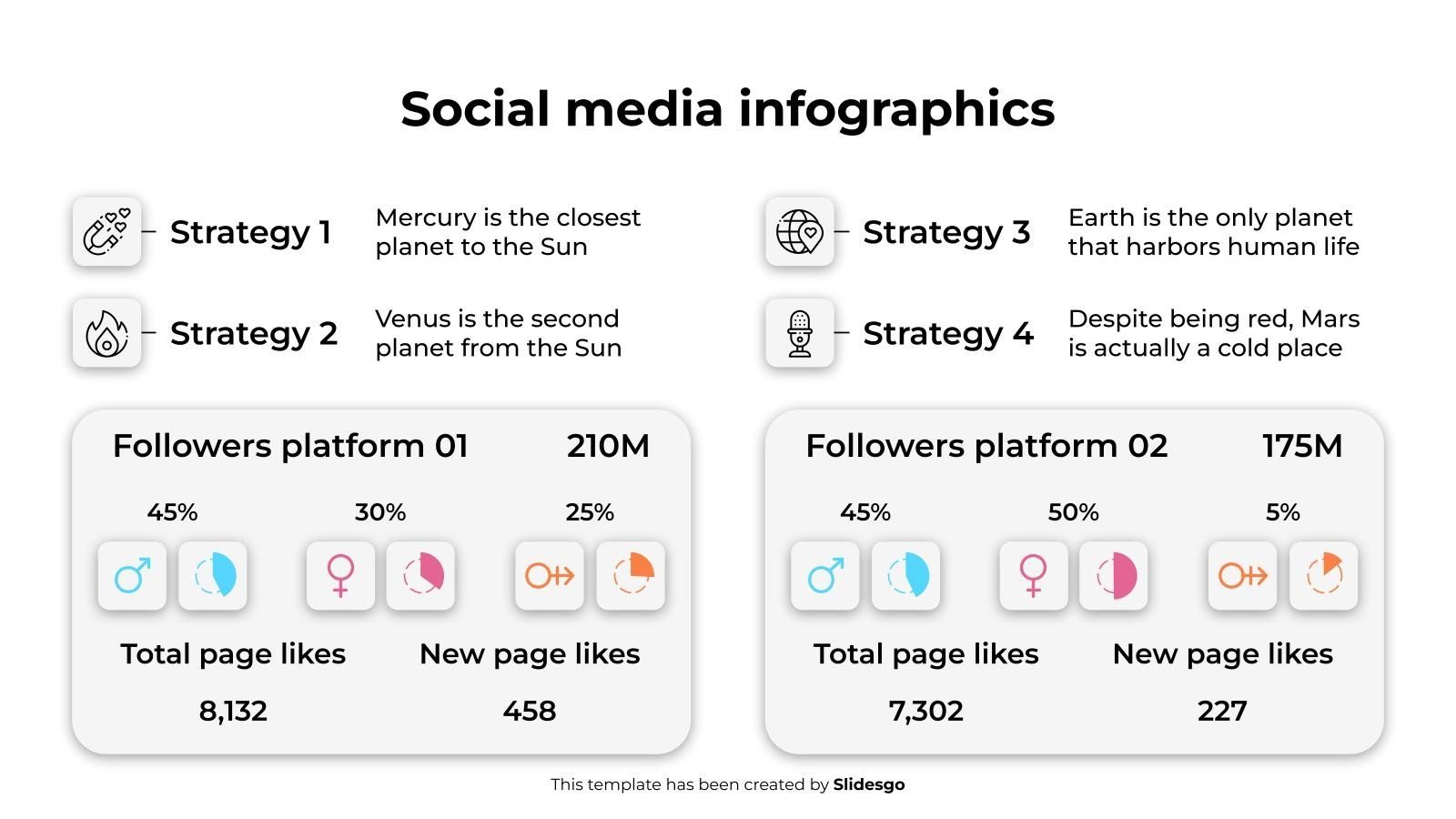 下载适用于 PowerPoint 或 Google 幻灯片的社交媒体信息图表模板,以充分利用信息图表。无论您是想在表格中组织您的业务预算,还是想示意性地分析您过去一年的销售额,这套信息图表资源都将有很大帮助。立即开始使用信息图表,将您的业务或营销演示提升到一个新的水平。