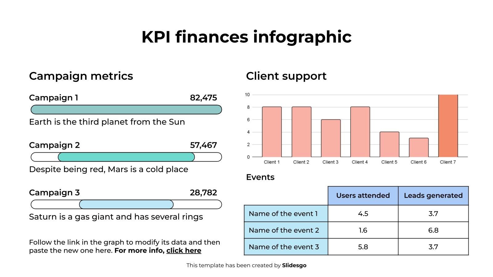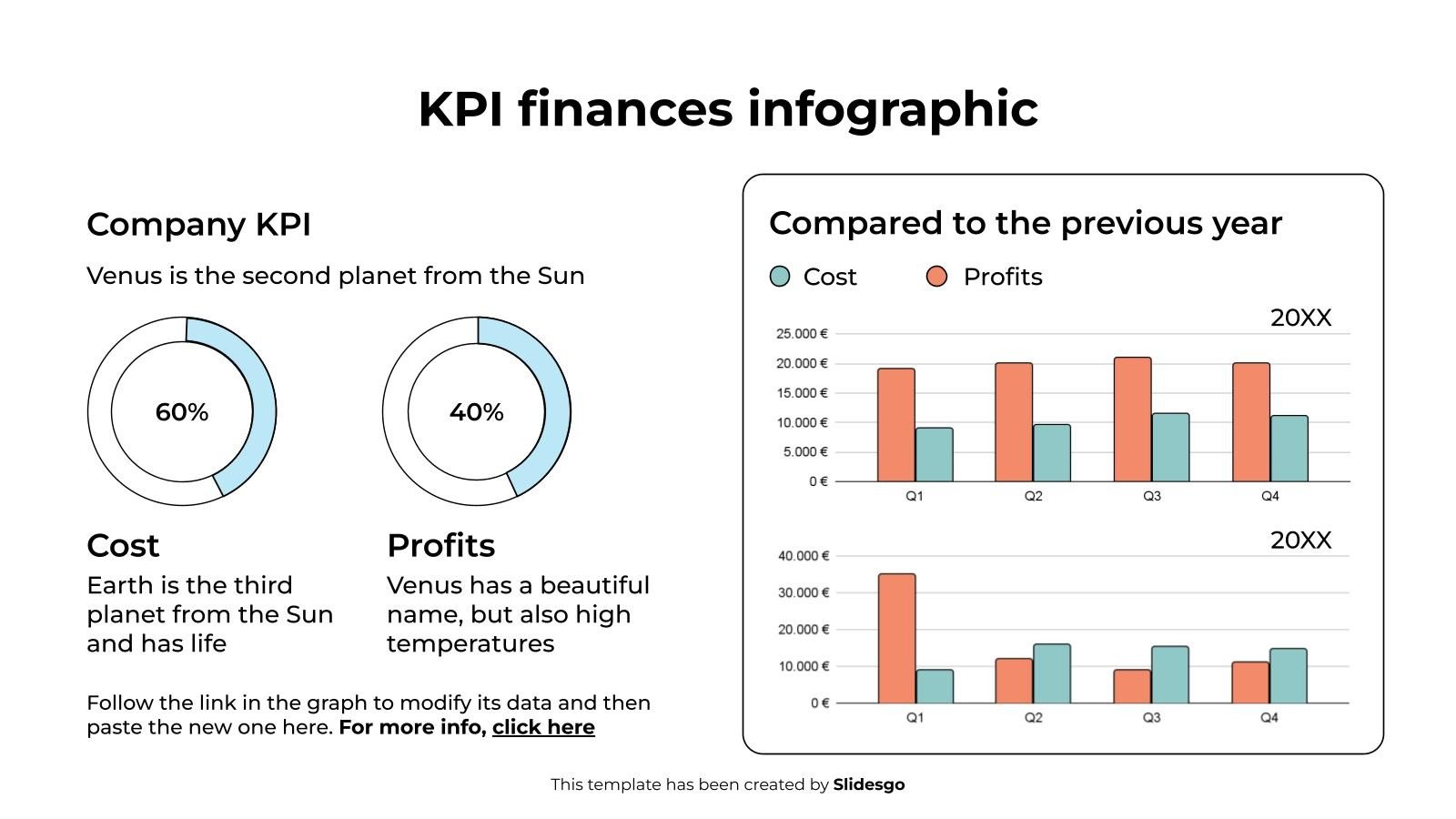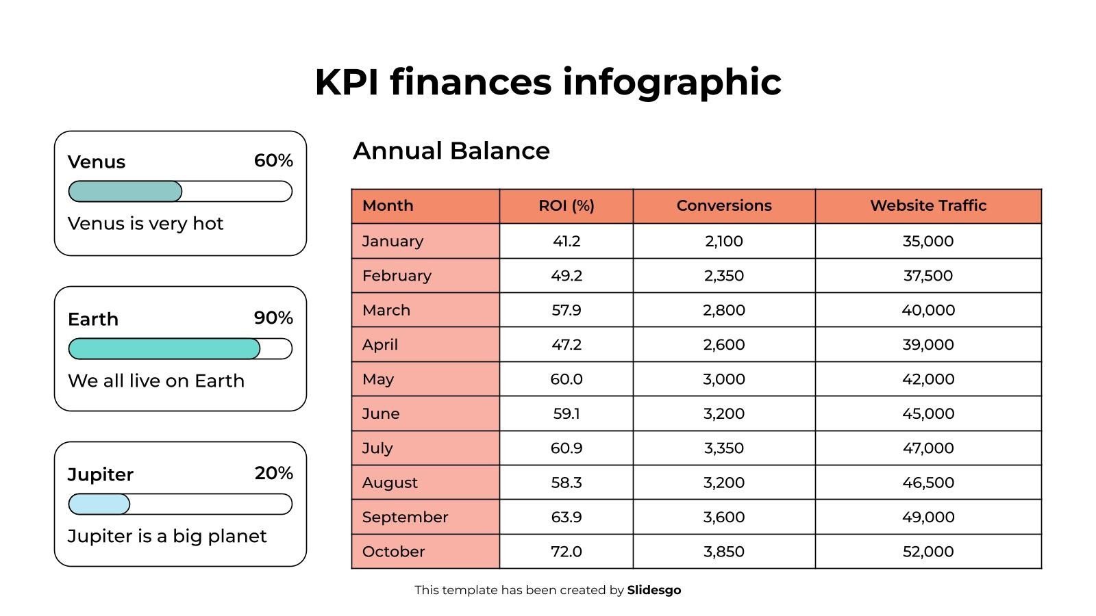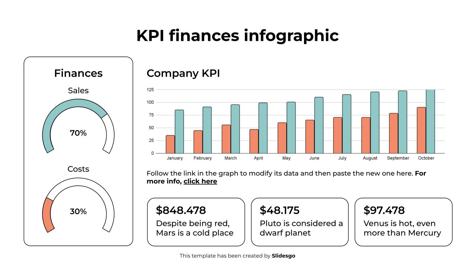 下载适用于 PowerPoint 或 Google 幻灯片的 KPI 财务信息图表模板,以充分利用信息图表。无论您是想在表格中组织您的业务预算,还是想示意性地分析您过去一年的销售额,这套信息图表资源都将有很大帮助。立即开始使用信息图表,将您的业务或营销演示提升到一个新的水平。