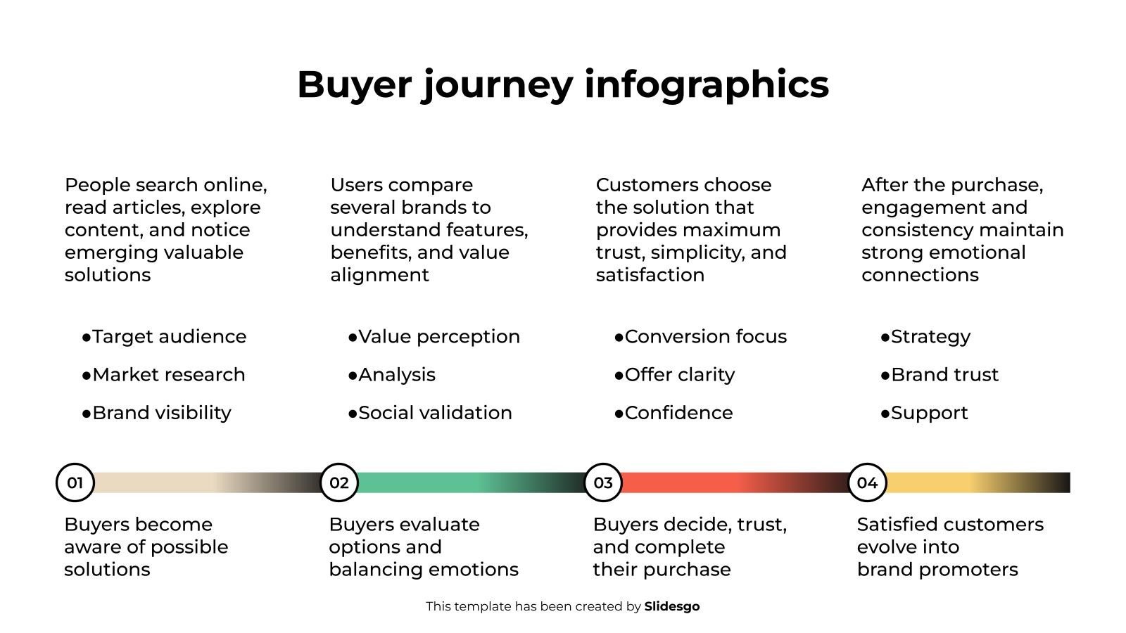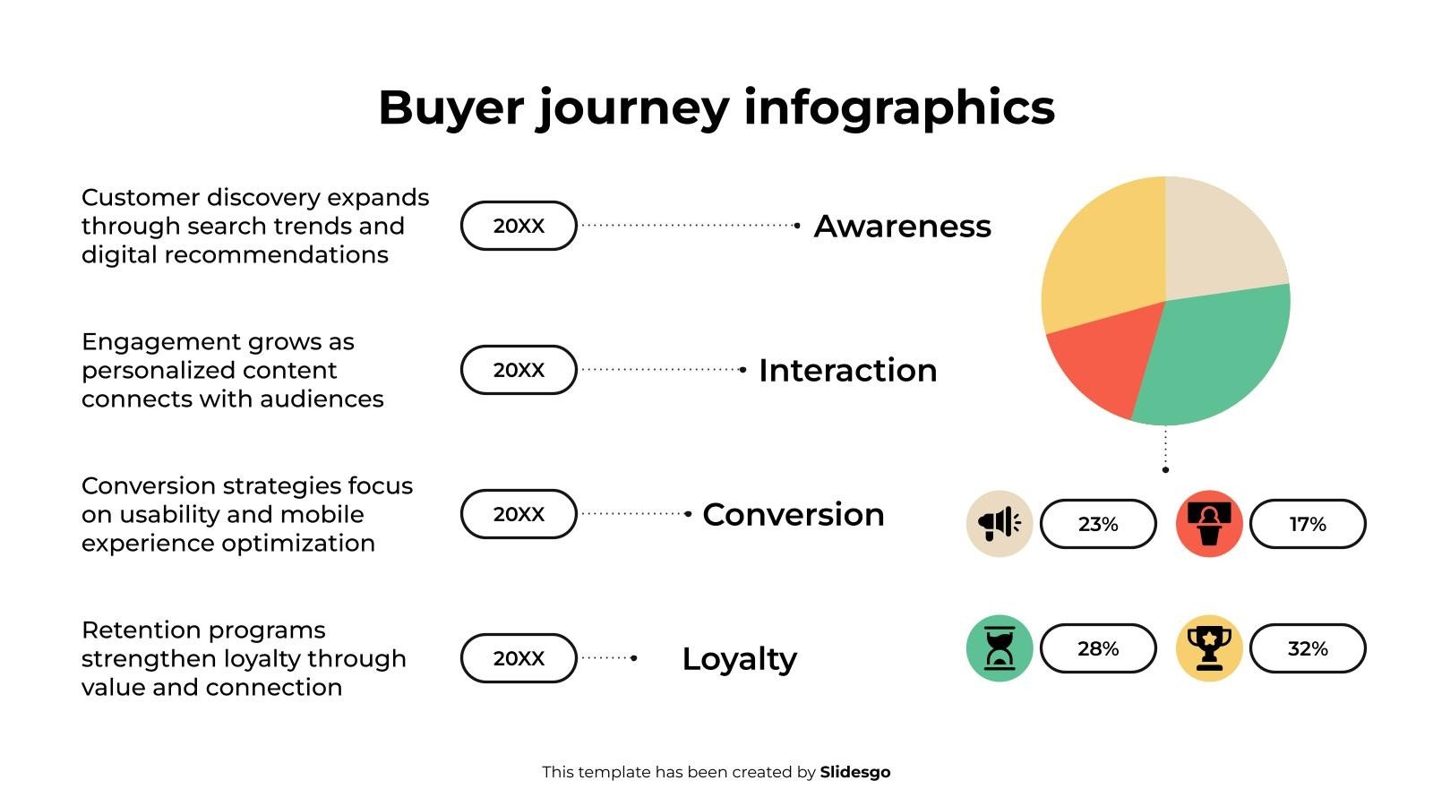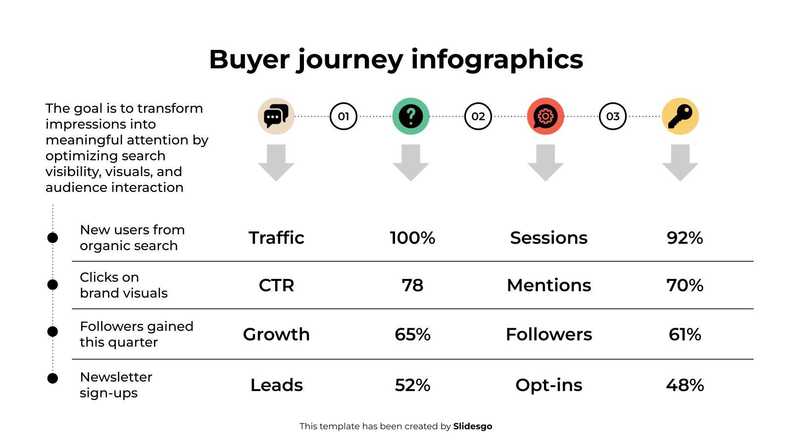 下载适用于 PowerPoint 或 Google 幻灯片的买家旅程信息图表模板,以充分利用信息图表。无论您是想在表格中组织您的业务预算,还是想示意性地分析您过去一年的销售额,这套信息图表资源都将有很大帮助。立即开始使用信息图表,将您的业务或营销演示提升到一个新的水平。